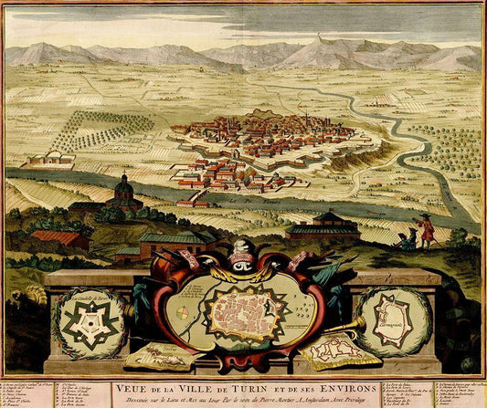 Turin or Torino and Its Envisons 1700 White Modern Wood Framed Art Print with Double Matting by Vintage Maps
