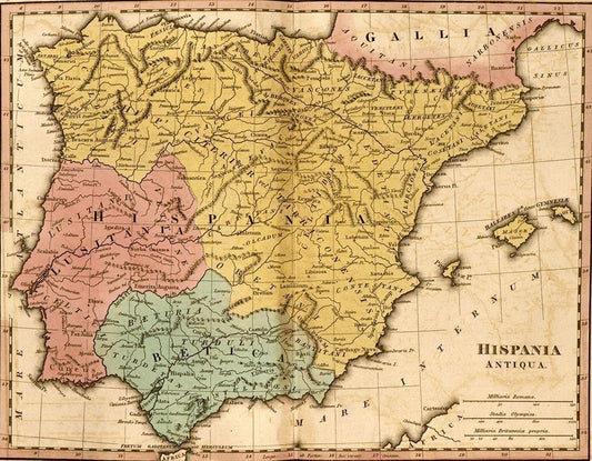 Spain or Hispania White Modern Wood Framed Art Print with Double Matting by Vintage Maps