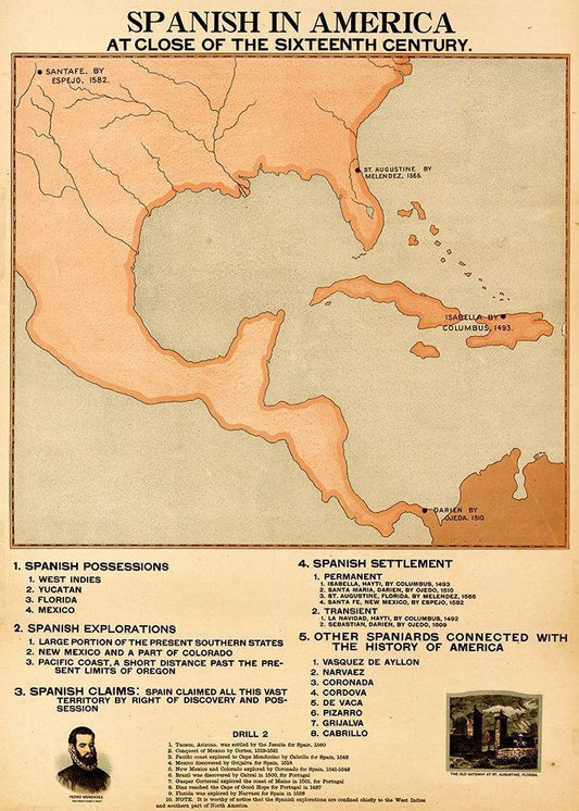 The Spanish in America at the close of the XVIth Century White Modern Wood Framed Art Print with Double Matting by Vintage Maps