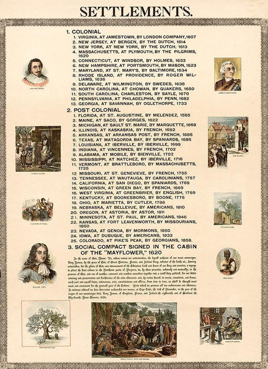 Settlements in America White Modern Wood Framed Art Print with Double Matting by Vintage Maps