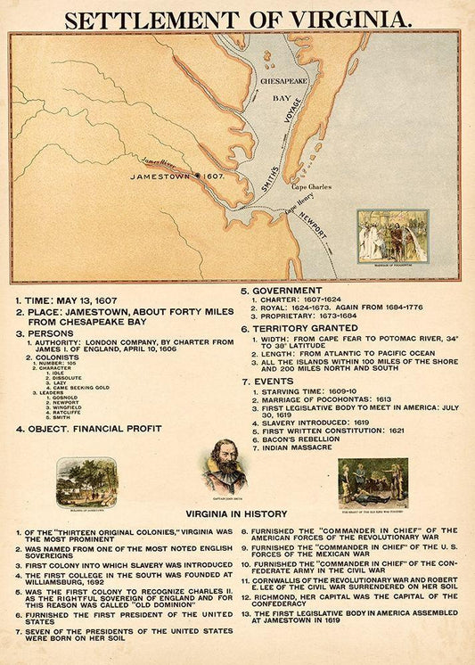 Settlement of Virginia White Modern Wood Framed Art Print with Double Matting by Vintage Maps