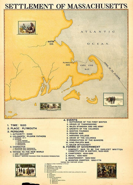 Settlement of Massachusetts White Modern Wood Framed Art Print with Double Matting by Vintage Maps
