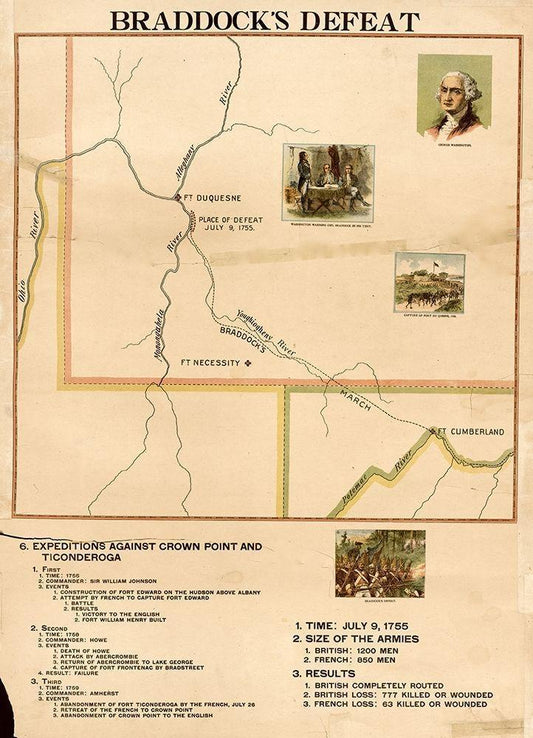 Braddocks Defeat White Modern Wood Framed Art Print with Double Matting by Vintage Maps