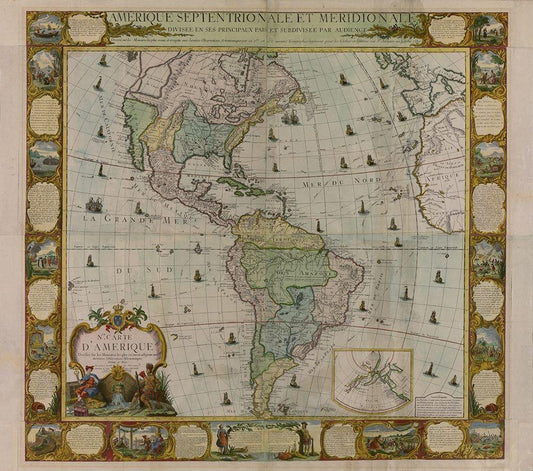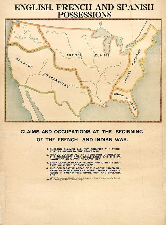 English French and Spanish Possessions White Modern Wood Framed Art Print with Double Matting by Vintage Maps