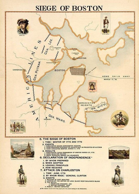 Siege of Boston White Modern Wood Framed Art Print with Double Matting by Vintage Maps