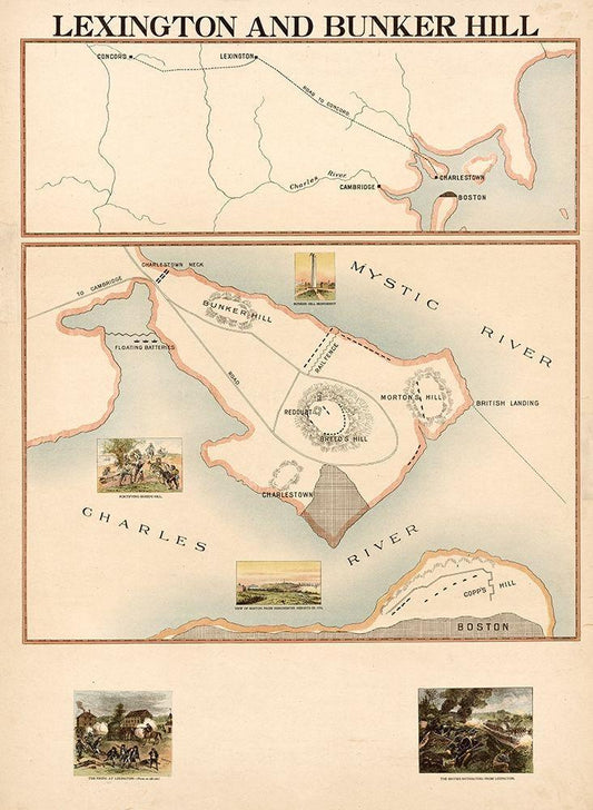 Lexington and Bunker Hill White Modern Wood Framed Art Print with Double Matting by Vintage Maps