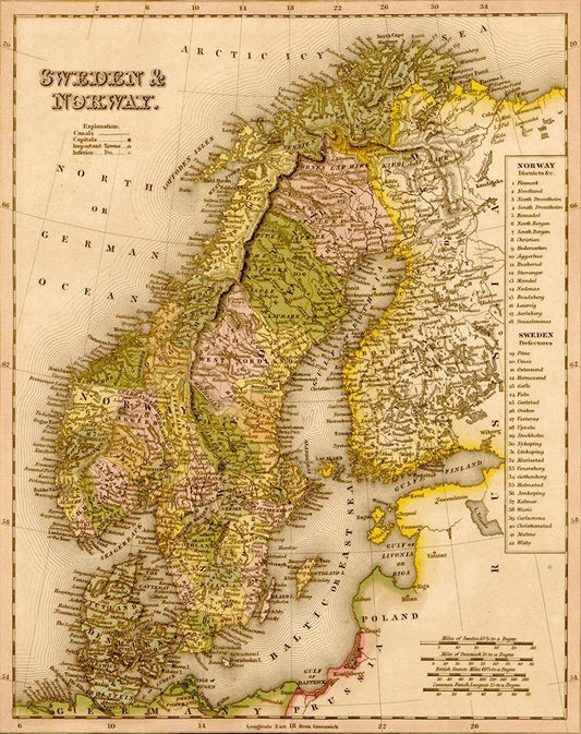 Sweden and Norway 1844 White Modern Wood Framed Art Print with Double Matting by Vintage Maps