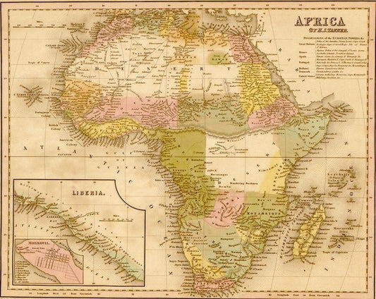 Africa 1844 White Modern Wood Framed Art Print with Double Matting by Vintage Maps