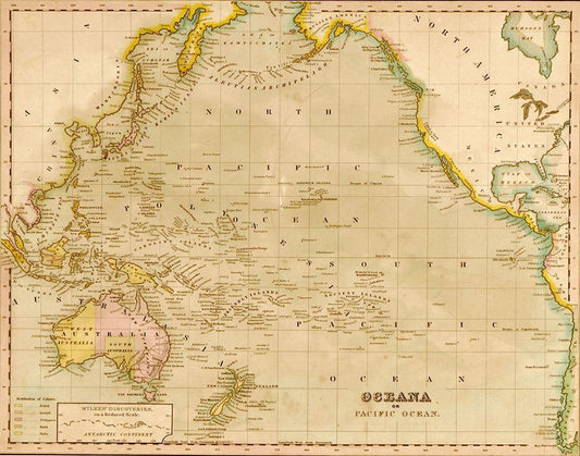 Oceania 1844 White Modern Wood Framed Art Print with Double Matting by Vintage Maps