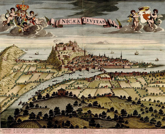Fortifications at Nice France 1700 White Modern Wood Framed Art Print with Double Matting by Vintage Maps