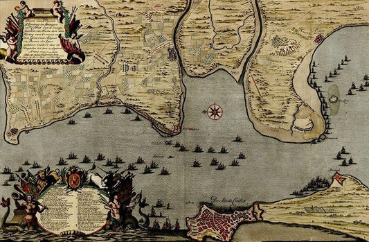 Straits and Defenses at Gibraltar 1700 White Modern Wood Framed Art Print with Double Matting by Vintage Maps