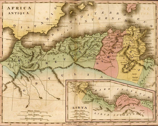 Northern Africa White Modern Wood Framed Art Print with Double Matting by Vintage Maps