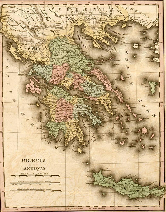 Ancient Greece White Modern Wood Framed Art Print with Double Matting by Vintage Maps