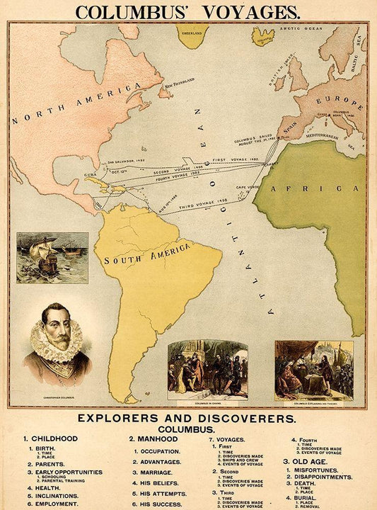 Plotting the navigation of Columbus to the New World White Modern Wood Framed Art Print with Double Matting by Vintage Maps
