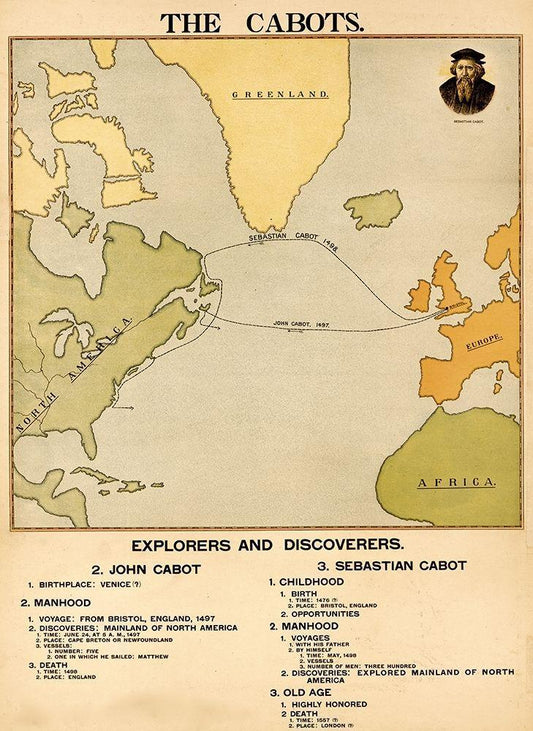 The Voyages of John and Sebastian Cabot White Modern Wood Framed Art Print with Double Matting by Vintage Maps