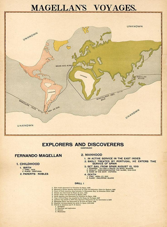Magellans Voyages White Modern Wood Framed Art Print with Double Matting by Vintage Maps