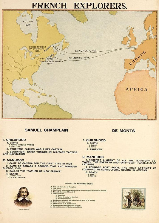 French Explorers Champlain and De Monts White Modern Wood Framed Art Print with Double Matting by Vintage Maps