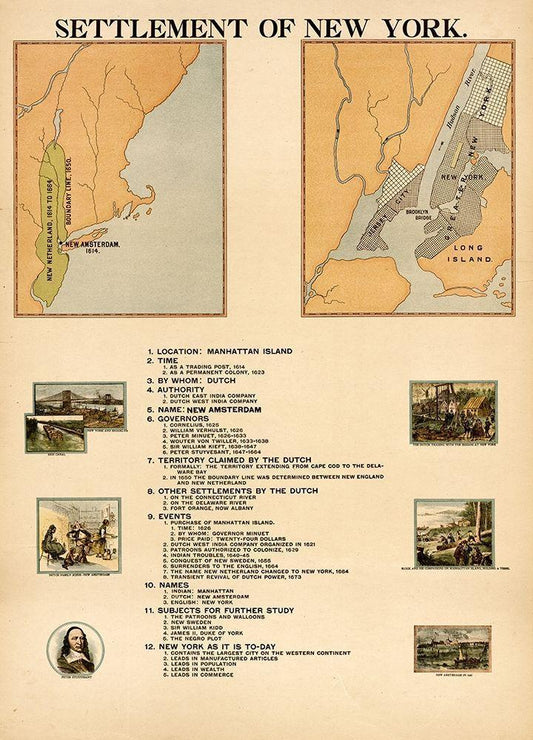 Settlement of New York White Modern Wood Framed Art Print with Double Matting by Vintage Maps