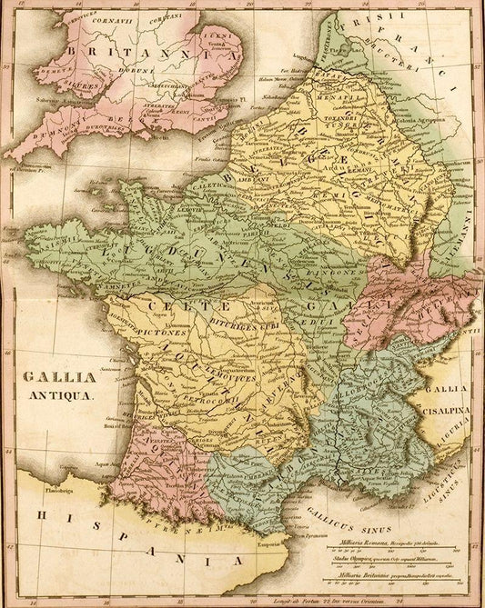Ancient France Gallia Antiqua White Modern Wood Framed Art Print with Double Matting by Vintage Maps