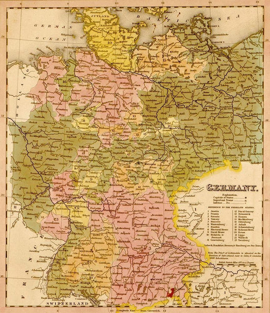 Germany 1844 White Modern Wood Framed Art Print with Double Matting by Vintage Maps