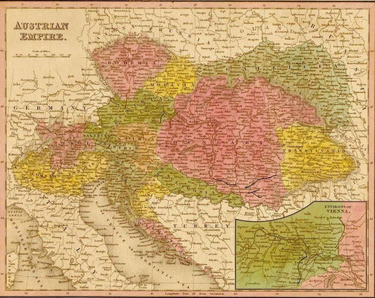 Austrian Empire 1844 White Modern Wood Framed Art Print with Double Matting by Vintage Maps