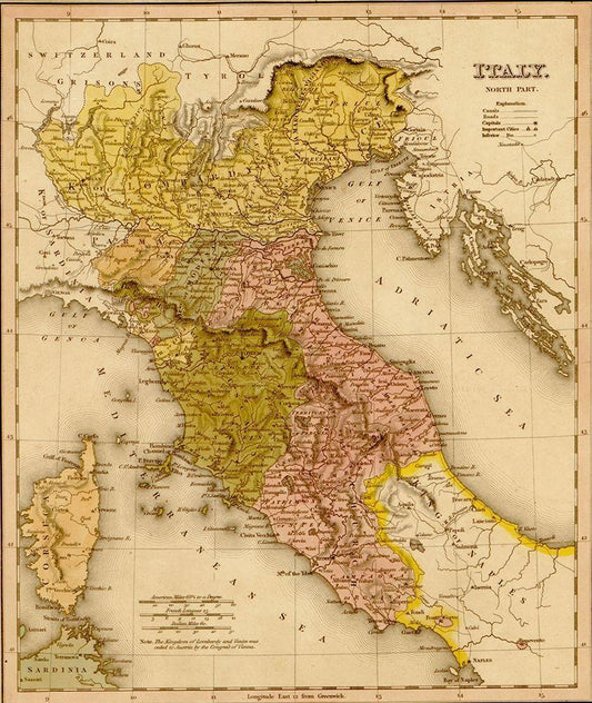 Italy 1844 White Modern Wood Framed Art Print with Double Matting by Vintage Maps