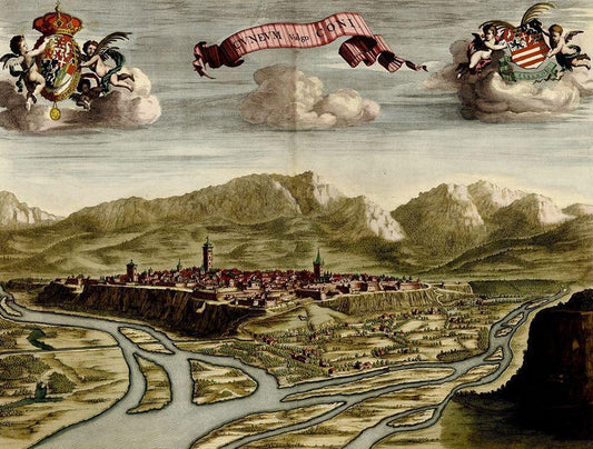 City of Cuneo 1700 White Modern Wood Framed Art Print with Double Matting by Vintage Maps
