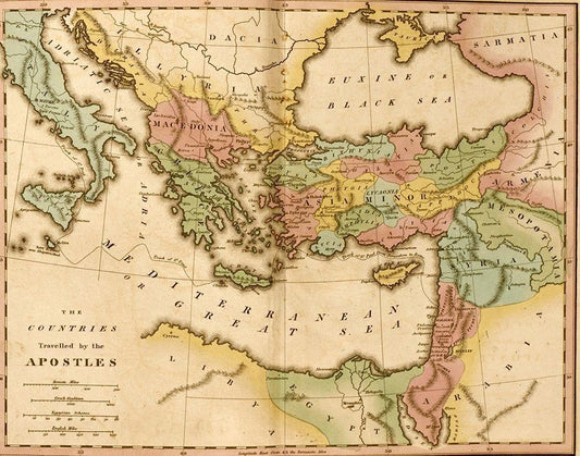 Countries travelled by the Apostles White Modern Wood Framed Art Print with Double Matting by Vintage Maps