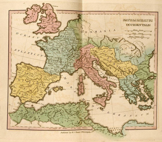 Lands of the Patriarchs in the Western Europe 330 CE White Modern Wood Framed Art Print with Double Matting by Vintage Maps