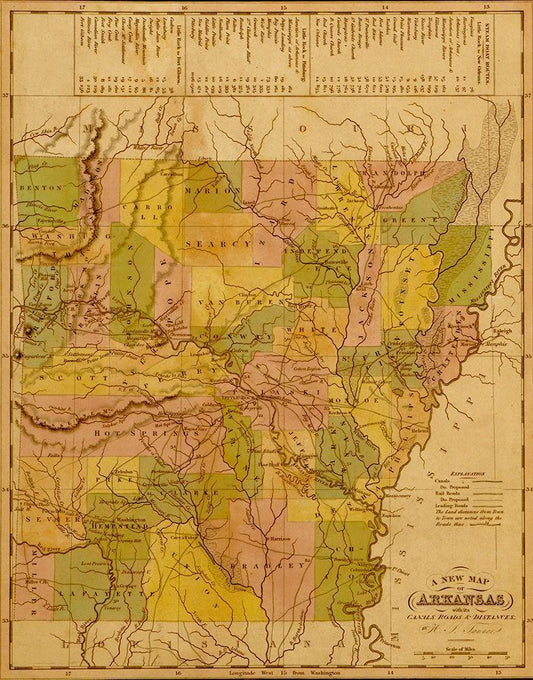 Arkansas 1844 White Modern Wood Framed Art Print with Double Matting by Vintage Maps