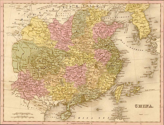 China 1844 White Modern Wood Framed Art Print with Double Matting by Vintage Maps