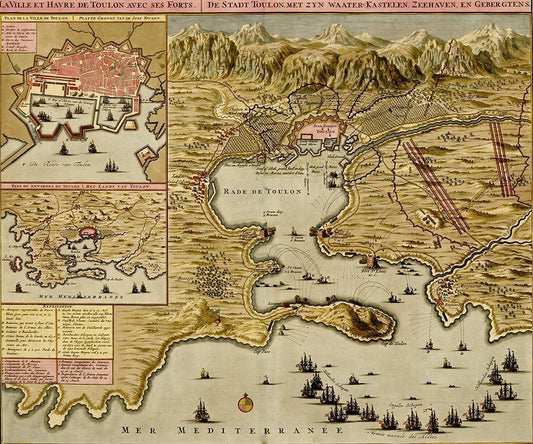Toulon France Harbor and Defenses 1700 White Modern Wood Framed Art Print with Double Matting by Vintage Maps