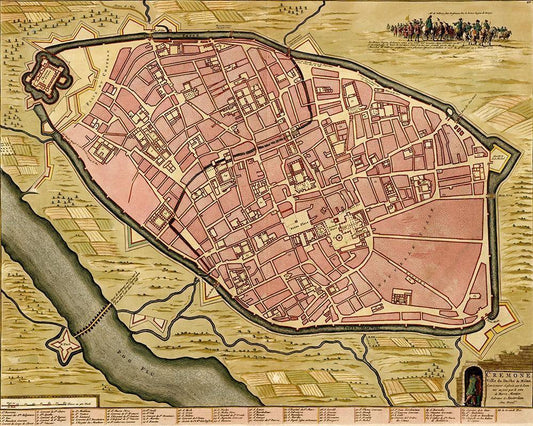 Battlements at Milan 1700 White Modern Wood Framed Art Print with Double Matting by Vintage Maps
