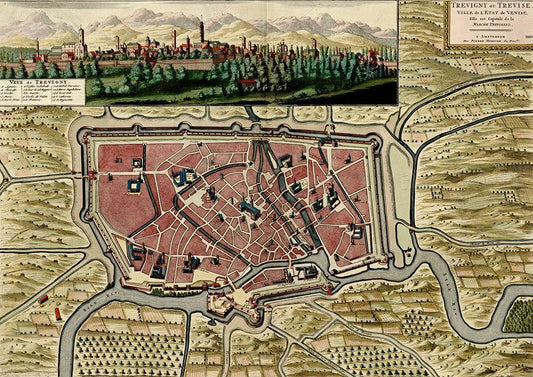 Trevise in the Italian Po Valley 1700 White Modern Wood Framed Art Print with Double Matting by Vintage Maps