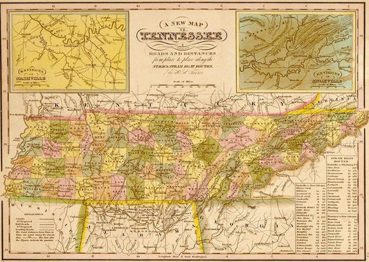 Tennessee 1844 White Modern Wood Framed Art Print with Double Matting by Vintage Maps