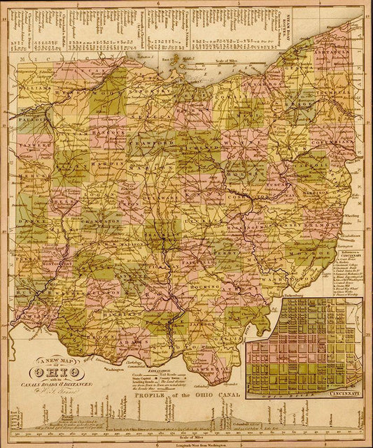 Ohio 1844 White Modern Wood Framed Art Print with Double Matting by Vintage Maps