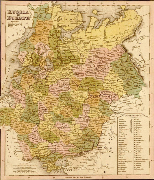European Russia 1844 White Modern Wood Framed Art Print with Double Matting by Vintage Maps