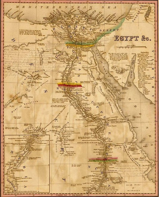 Egypt 1844 White Modern Wood Framed Art Print with Double Matting by Vintage Maps