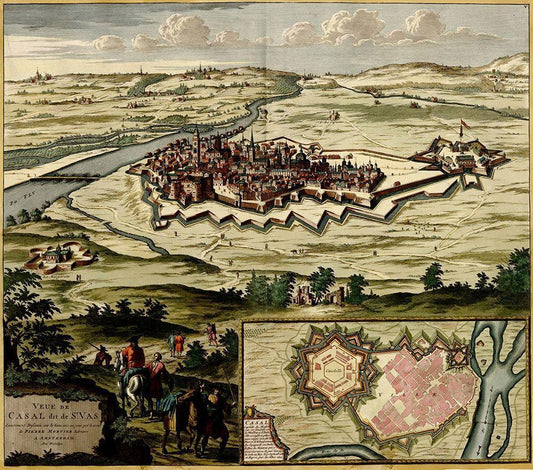 Casal on the Po River 1700 White Modern Wood Framed Art Print with Double Matting by Vintage Maps