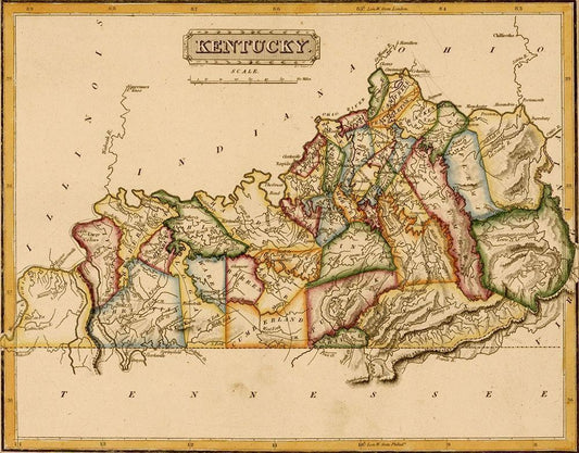 Kentucky 1817 White Modern Wood Framed Art Print with Double Matting by Vintage Maps