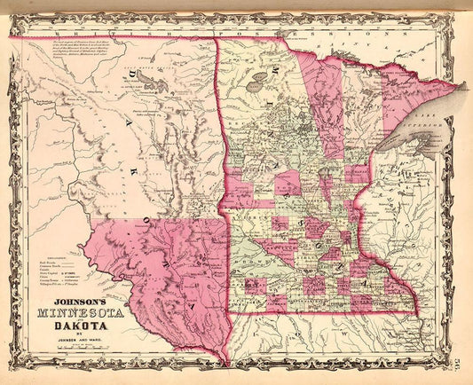 Minnesota and Dakota 1862 White Modern Wood Framed Art Print with Double Matting by Vintage Maps