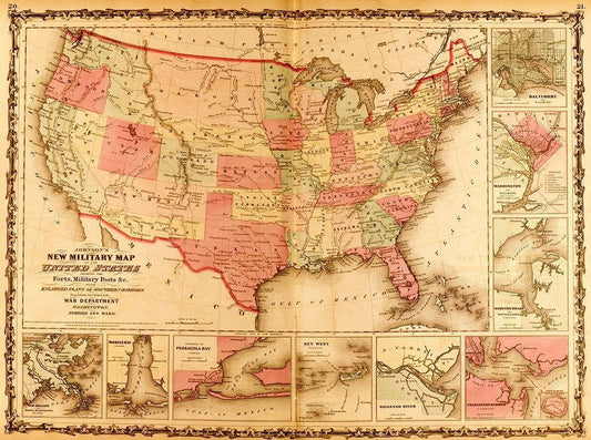 Military Map of the United States 1862 White Modern Wood Framed Art Print with Double Matting by Vintage Maps