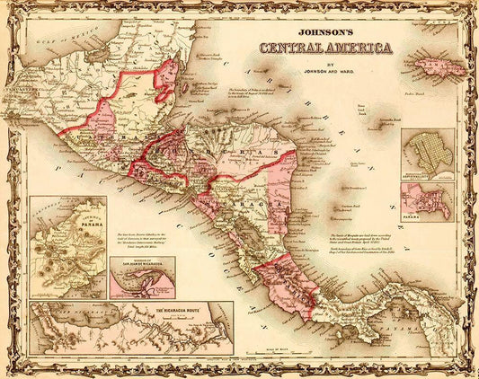 Central America 1862 White Modern Wood Framed Art Print with Double Matting by Vintage Maps