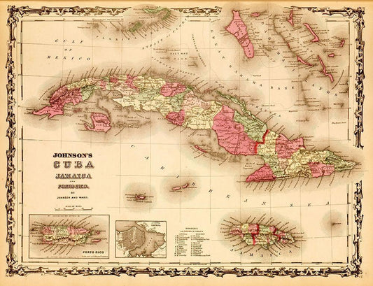 Cuba 1862 White Modern Wood Framed Art Print with Double Matting by Vintage Maps