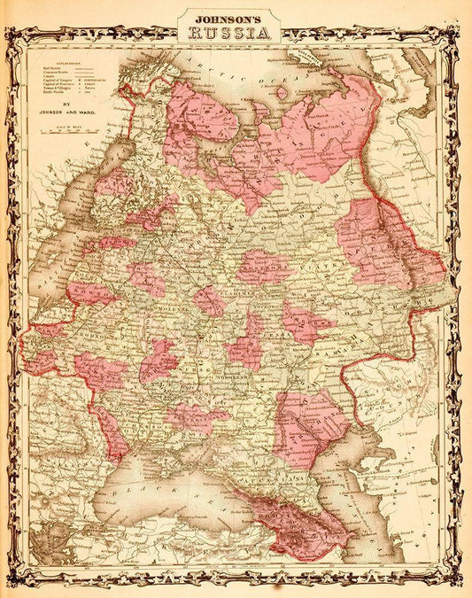 Russia 1862 White Modern Wood Framed Art Print with Double Matting by Vintage Maps