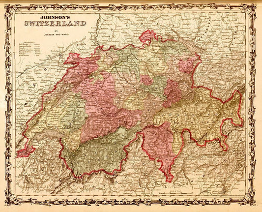 Switzerland 1862 White Modern Wood Framed Art Print with Double Matting by Vintage Maps