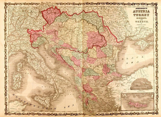 Austria and Turkey In Europe 1862 White Modern Wood Framed Art Print with Double Matting by Vintage Maps