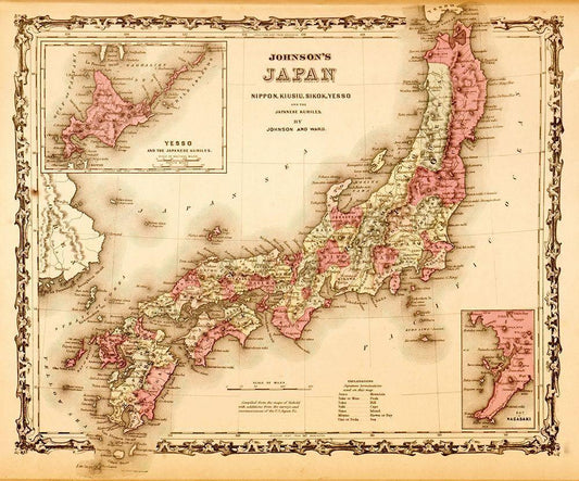 Japan 1862 White Modern Wood Framed Art Print with Double Matting by Vintage Maps