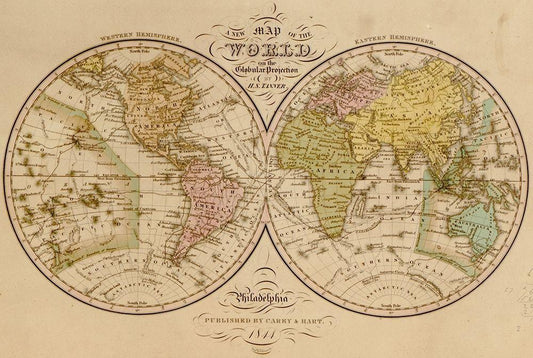 World Map 1844 White Modern Wood Framed Art Print with Double Matting by Vintage Maps