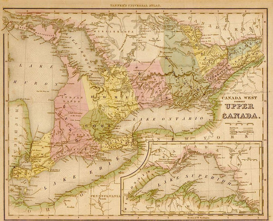 Upper Canada 1844 White Modern Wood Framed Art Print with Double Matting by Vintage Maps